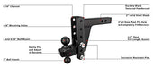 BulletProof Hitches 2.0" Adjustable Extreme Duty (30,000lb Rating) 6" Drop/Rise Trailer Hitch with 2" and 2 5/16" Dual Ball (Black Textured Powder Coat, Solid Steel)