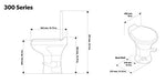 Details: Dometic 300 series gravity-flush toilets offer powerful triple jet action that removes waste completely, plus an innovative drop away ball and valve system. These full-size residential-style toilets feature efficient foot pedal operation with adjustable water level. 300 series toilets replace any standard-height RV toilet (two-bolt, four-bolt, and angled two-bolt styles) not installed on a raised platform. Some installations may require a Dometic floor flange adapter kit. Contemporary styling White or bone finish Triple-jet bowl rinse for 360-degree cleaning action Innovative drop-away ball and valve system Full-size residential style seat Extremely low flush technology uses as little as 1 pint/.5 liter per flush Two-bolt installation with quick-access water connection Hands-free foot pedal operation with adjustable water level Easy serviceability with modular componentsDometic's Two-Year Protection Plus warranty.Additional Features:Flush Method: Pedal, Bowl Material: Plastic, Base Material:Plastic,Seat Height:Standard (18) ",Seat Type:Plastic ,Seat Close: Standard